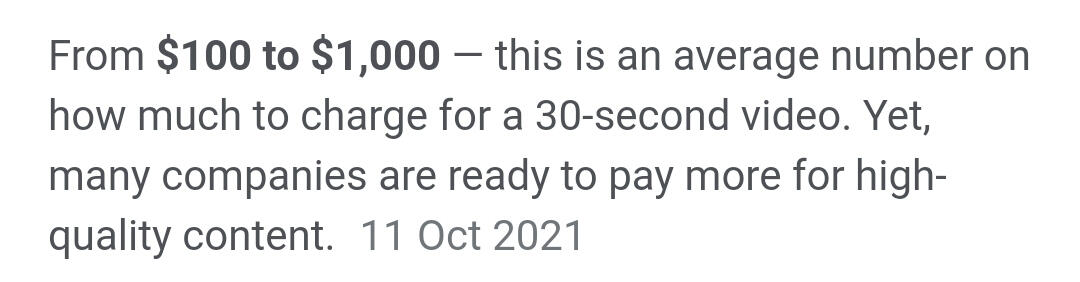 Probably if you don't knowA video ads creator get paid $100 to $1000 per 30 secs video Createdπ€.